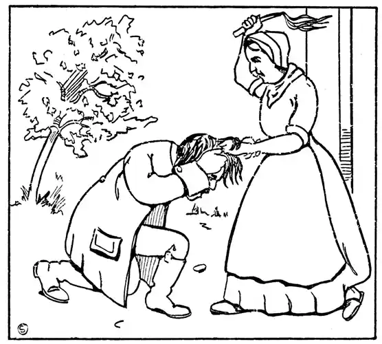 Nille (alone)—I don't believe there is such a lazy rascal in the whole district as my husband. I can hardly wake him up when I pull him out of bed by the hair. To-day the rascal knows that it is market day, but still he lies and sleeps so long. Herr Paul said to me lately, "Nille, you are too hard on your husband. He is and ought to be master of the household." But I answered him, "No, my dear Herr Paul, if I should let him boss this house for a single year then neither the landlord would get his rent nor the rector his fee, since he would squander in drink all that I have in the house. Should I let such a man rule this household, who is ready to sell farm, wife, children—yes, even himself—for drink?" Whereupon Herr Paul became silent and thoughtfully stroked his chin. The overseer of the estate sides with me and says, "Little woman, don't you mind what the preacher says. Although the ritual says that you must honor and obey your husband, your lease, which is newer than the ritual, says that you must keep up your place and pay your rent, which it would be impossible for you to do if you did not drag your old man out of bed by the hair every morning and drive him to work." Just now I jerked him out of bed and went out to the barn to see how the work was getting on, and when I came back he was sitting with his trousers over one leg, and so the switch had to be taken off the peg and my good old Jeppe dressed down until he became quite awake again. The only thing he is afraid of is Master Erick, (that is what I call the switch.) Hey, Jeppe, aren't you up yet, you[Pg 18] lazy bones? Would you like to speak with Master Erik once more? Hey, Jeppe, come out!