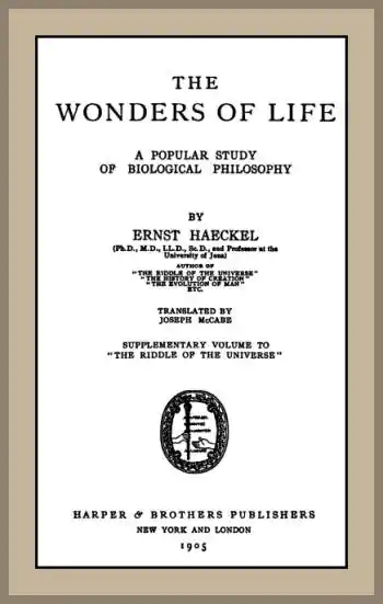 Hence the present work on the wonders of life is, as the title indicates, a supplementary volume to The Riddle of the Universe. While the latter undertook to make a comprehensive survey of the general questions of science—as cosmological problems—in the light of the monistic philosophy, the present volume is confined to the realm of organic science, or the science of life. It seeks to deal connectedly with the general problems of biology, in strict accord with the monistic and mechanical principles which I laid down in 1866 in my General Morphology. In this I laid special stress on the universality of the law of substance and the substantial unity of nature, which I have further treated in the second and fourteenth chapters of The Riddle of the Universe.