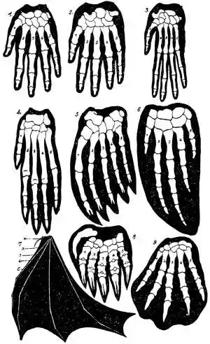 Eine Fülle der interessantesten Beispiele von rudimentären Organen liefert die vergleichende Osteologie oder Skelettlehre der Wirbeltiere, einer der anziehendsten Zweige der vergleichenden Anatomie. Bei den allermeisten Wirbeltieren finden wir zwei Paar Gliedmaßen am Rumpf, ein Paar Vorderbeine und ein Paar Hinterbeine. Sehr häufig ist jedoch das eine oder das andere Paar derselben verkümmert, seltener beide, wie bei den Schlangen und einigen aalartigen Fischen. Aber einige Schlangen, z. B. die Riesenschlangen (Boa, Python), haben hinten noch einige unnütze Knochenstückchen im Leibe, welche die Reste der verloren gegangenen Hinterbeine sind. Ebenso haben die walfischartigen Säugetiere (Cetaceen), welche nur entwickelte Vorderbeine (Brustflossen) besitzen, hinten im Fleische noch ein Paar ganz überflüssige Knochen, die Überbleibsel der verkümmerten Hinterbeine. Dasselbe gilt von vielen echten Fischen, bei denen in gleicher Weise die Hinterbeine (Bauchflossen) verloren gegangen sind. Umgekehrt besitzen unsere Blindschleichen (Anguis) und einige andere Eidechsen inwendig ein vollständiges Schultergerüst, obwohl die Vorderbeine, zu deren Befestigung dasselbe dient, nicht mehr vorhanden sind. Ferner finden sich bei verschiedenen Wirbeltieren die einzelnen Knochen der beiden Beinpaare in allen verschiedenen Stufen der Verkümmerung, und oft die rückgebildeten Knochen und die zugehörigen Muskeln stückweise erhalten, ohne doch irgendwie eine Verrichtung ausführen zu können. Das Instrument ist wohl noch da, aber es kann nicht mehr spielen.
