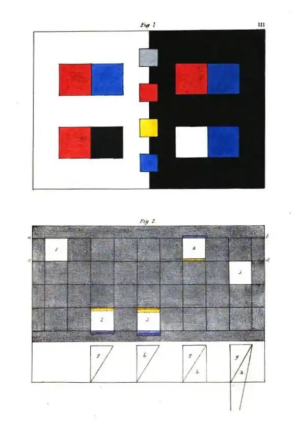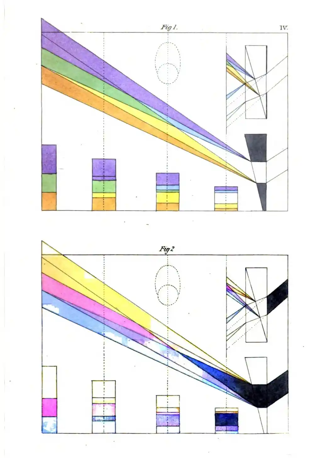 Ample details respecting the opinions of Louis Bertrand Castel, a Jesuit, are given in the historical part. The coincidence of some of his views with those of Goethe is often apparent: he objects, for instance, to the arbitrary selection of the Newtonian spectrum; observing that the colours change with every change of distance between the prism and the recipient surface.—Farbenl. vol. ii. p. 527. Jeremias Friedrich Gülich was a dyer in the neighbourhood of Stutgardt: he published an elaborate work on the technical details of his own pursuit.—Farbenl. vol. ii. p. 630.