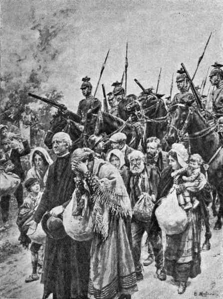 The sight of old women and men fleeing from village to village; young mothers with babies in arms, with their few personal effects171 on their backs, or in some more fortunate cases with their goods and chattels surrounding the aged grandmother stowed away in an old farm cart, drawn by a nag too venerable to be of service to the State; this is what one has seen daily. Picture to yourself our night marches with the burning villages on all sides set fire to by German shells—and the Germans have been rather careless whether their shells struck fortified and defended positions, or open ones. In some cases the fires were caused intentionally by marauding patrols.