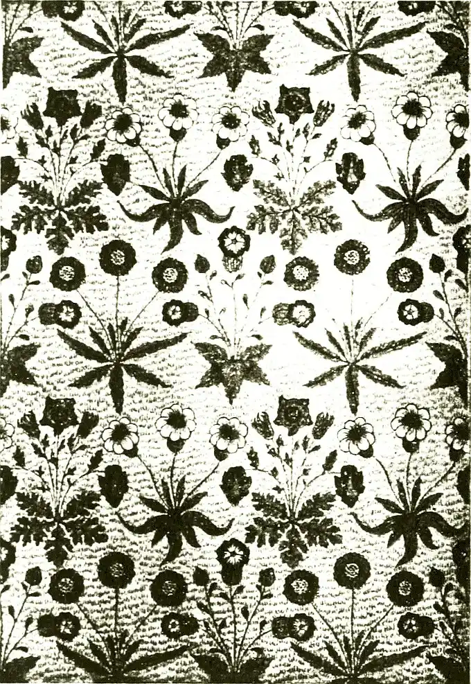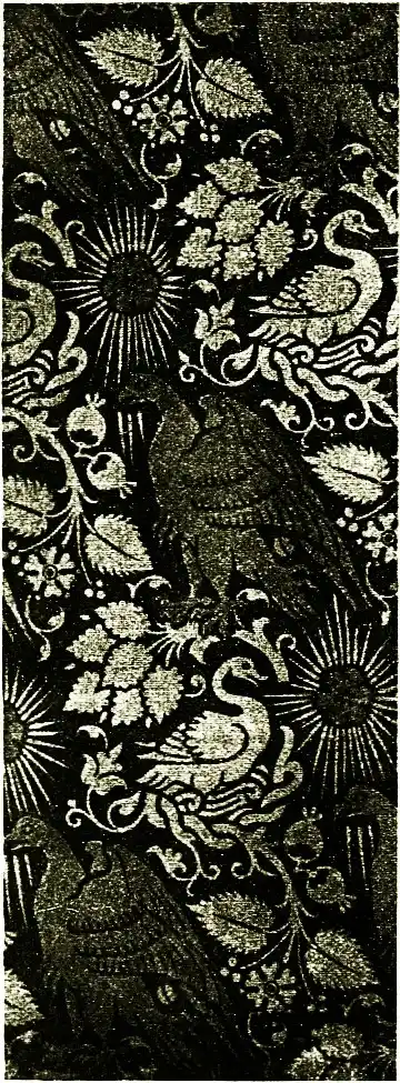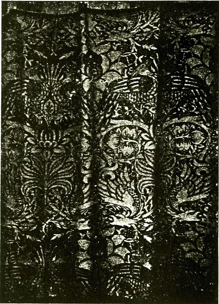 At another time it was weaving that absorbed him, and the study of dyeing naturally led him to textiles, and, indeed, was probably undertaken with the view of reviving their manufacture in new forms, and from rugs and carpets he conceived the idea of reviving Arras tapestry. I remember [pg 25] the man who claimed to have taught Morris to work on the high-warp loom. His name was Wentworth Buller. He was an enthusiast for Persian art, and he had travelled in that country and found out the secret of the weaving of the fine Persian carpets, discovering, I believe, that they were made of goats' hair. He made some attempt to revive this method in England, but from one cause or another was not successful. William Morris, when he had learned the craft of tapestry weaving himself, set about teaching others, and trained two youths, one of whom (Mr. Dearle) is now chief at the Merton Abbey Works, who became exceedingly skilful at the work, executing the large and elaborate design of Sir Edward [pg 26] Burne-Jones (The Adoration of the Magi), which was first worked for the chapel of his own and Morris's college (Exeter College) at Oxford.
