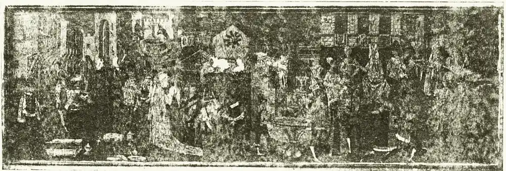 There is another form of pictorial appeal which has, owing to the association of art with commercial enterprise, attained such vast proportions as to count as a popular education of the eye—for good or for evil. I mean the pictorial poster, which might be said to be the most original flourishing and vigorous type of popular art existing, and the only popular form of mural painting. Its too [pg 253] frequent banality and vulgarity are to be deplored, but to a great extent they are inseparable from the conditions of the existence of the poster; but undoubtedly there is a great amount of artistic ability employed in these designs, which often show, too, the great resources of modern colour-printing. It is part of the wastefulness of our system that so much skill, talent, and labour should be spent on such ephemeral purposes and placed in such incongruous positions and injurious juxtapositions, often appearing in the mass as a sort of sticking-plaster of varied colour upon the doleful face of a dingy street. The same ability under different influences and inspired by different ideals might serve to make eloquent the bare walls of our schools and public buildings with painted histories and legends of our country and race, which might foster the public spirit of our future citizens. Every town should have its history painted in its Town Hall—as Manchester has done in that wonderful series of mural pictures by Madox Brown. There might be competitions in schemes of decoration and mural design of this sort among the students of the local art schools. Is this an ideal?