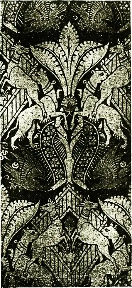 One knows but little of William Morris's progenitors. His name suggests Welsh origin, though his birthplace was Walthamstow. Born 24th March 1834, one of a well-to-do family, it was a fortunate circumstance that he was never cramped by poverty in the development of his aims. Escaping the ecclesiastical influence of Oxford and a Church career, his prophets being rather John Ruskin and Thomas Carlyle, he approached the study and practice of art from the architectural side under one of our principal English Gothic revivalists, George Edmund Street, although he at one time entertained the idea of becoming a painter, and the very interesting picture of "Guinevere" which was shown at one of the Arts and Crafts Exhibitions makes one regret he did not do more [pg 22] in this way. Few men had a better understanding of the nature of Gothic architecture, and a wider knowledge of the historic buildings of his own country, than William Morris, and there can be no doubt that this grasp of the true root and stem of the art was of enormous advantage when he came to turn his attention to the various subsidiary arts and handicrafts comprehended under decorative design. The thoroughness of his methods of [pg 23] work and workmanlike practicality were no less remarkable than his amazing energy and capacity for work.