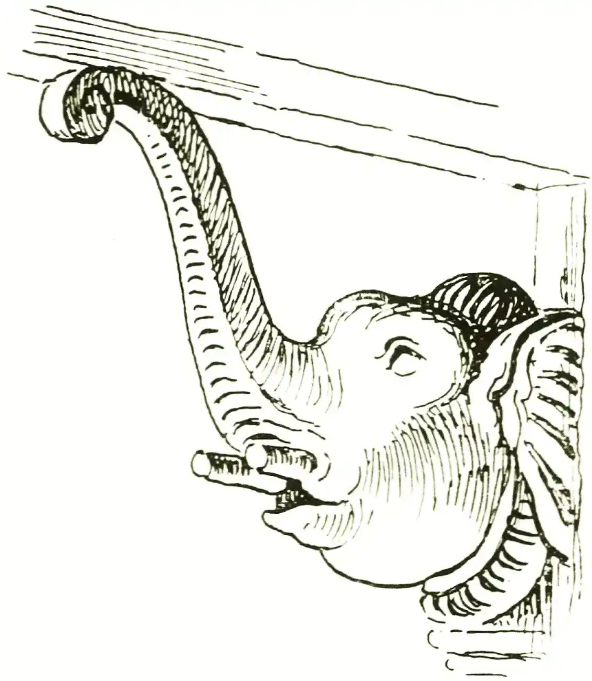 The simple, black-framed, old English Buckinghamshire elbow-chair, with its rush-bottomed seat, was substituted for the wavy-backed and curly-legged stuffed chair of the period, with its French polish and concealed, and often very unreliable, construction. Bordered Eastern rugs, and fringed Axminster carpets, on plain or stained boards, or India matting, took the place of the stuffy planned carpet; rich, or simple, flat patterns acknowledged [pg 18] the wall, and expressed the proportions of the room, instead of trying to hide both under bunches of sketchy roses and vertical stripes; while, instead of the big plate-glass mirror, with ormolu frame, which had long reigned over the cold white marble mantel-piece, small bevelled glasses were inserted in the panelling of the high wood mantel-shelf, or hung over it in convex circular form. Slender black wood or light brass curtain rods, [pg 19] and curtains to match the coverings, or carry out the colour of the room, displaced the heavy mahogany and ormolu battering-rams, with their fringed and festooned upholstery, which had hitherto overshadowed the window of the so-called comfortable classes. Plain white or green paint for interior wood-work drove graining and marbling to the public-house; blue and white Nankin, Delft, or Grès de Flandres routed Dresden and [pg 20] Sèvres from the cabinet; plain oaken boards and trestles were preferred before the heavy mahogany telescopic British dining-table of the mid-nineteenth century; and the deep, high-backed, canopied settle with loose cushions ousted the castored and padded couch from the fireside.