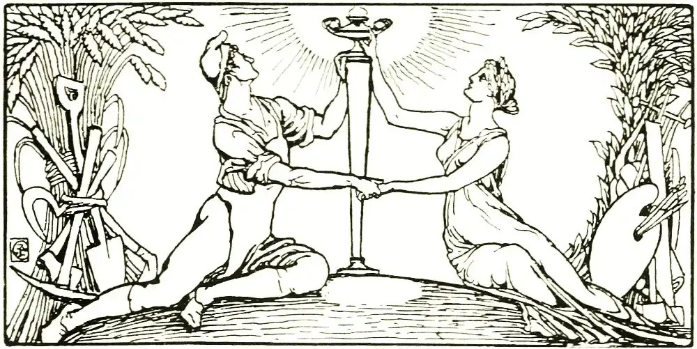 The art of Morris and those associated with [pg 21] him was really but the outward and visible sign of a great movement of protest and reaction against the commercial and conventional conceptions and standards of life and art which had obtained so strong a hold in the industrial nineteenth century.