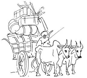 We saw the golf links and a golf club house—quite à la Anglaise—on a rising ground and bare of trees, for a wonder in Ceylon. It appeared that these links occupied the site of a farm which did not succeed. Then we saw the river, where an engineer’s iron bridge had taken the place of a former bridge of boats. Colombo must have largely lost its primitive and Dutch character when the old Fort was destroyed. This has been replaced by terribly ugly Barrack buildings, and the town is rapidly becoming a modern commercial centre, big warehouses and universal provider’s stores are rising up after the European or American type. The native character, however, manifests itself still, peeping out here and there, especially in the older298 shops, and there is more native costume to be seen than one had imagined. The country ox-cart is a striking object with its huge tilt of matting projecting forward and backward like a hood, the single zebu by which it is usually drawn appearing small for the size of the vehicle.