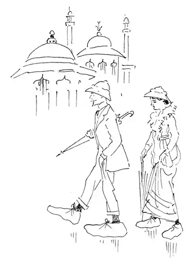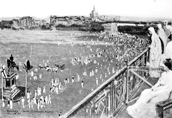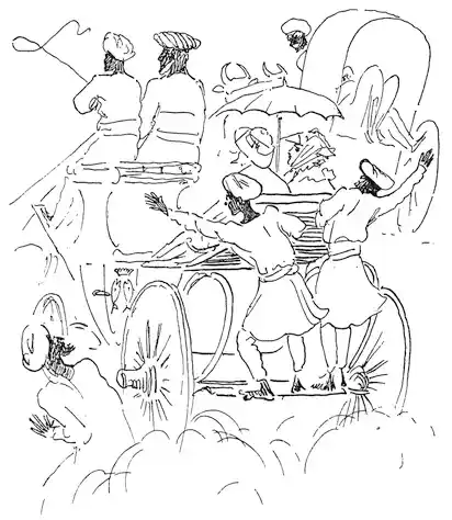 Although many books descriptive of India and Indian life have recently appeared, even a short visit to that wonderful country presents so extraordinary a series of spectacles to the European, especially to one seeing the East for the first time, that it occurred to me that a few notes and fresh impressions from an artist’s point of view, accompanied by sketches made on the spot, as well as illustrations of the lighter side of travel, might not be without interest to the public.