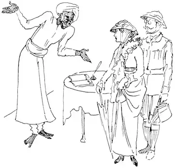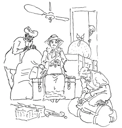 The scene in the hall of a Colombo hotel is always busy, but in a different way to a European hostelry—one might almost say it was feverish haste in the midst of languid indolence—a ballet of energetic action before a crowd of unconcerned spectators. While some are in the fuss of departure or arrival, rows of enervated travellers lounge in wicker chairs, reading, chatting, smoking, or engaged with tea or cooling drinks, mostly attired in white; many of the ladies in delicate summer dresses, the men in white drill or tussore suits. All nationalities are represented, the majority American, and mostly people waiting for their steamers outward or homeward.