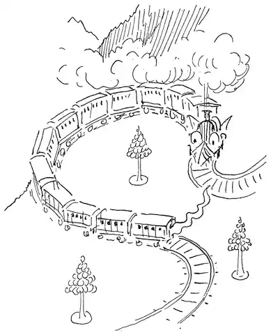 In the afternoon about four or five o’clock we reached Nunnoya station, where we had to change into a narrow-gauge train to finish the last part of the journey to Nuwara-Eliya. We continued304 to climb in shorter and more loop-like curves, being able often to gaze down on the line we had just traversed winding below like a glittering serpent among the wooded hills and tea plantations. Tea everywhere, and not a drop to drink—yet suggesting potentially more than the whole world could consume.