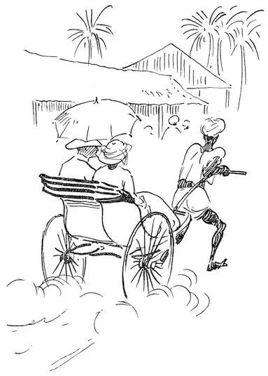 Jin-rickshaws were in great request, but the supply seemed fully equal to the demand, and the esplanade was always full of the trotting boys drawing white clad Europeans in topis up and down the terra-cotta coloured road. There was a wide, green strip extending along the drive, and on the other side of the suburbs of Colombo extended northwards, chiefly native houses, and bungalows of European residents often enclosed in gardens and hidden in ample foliage of trees.
