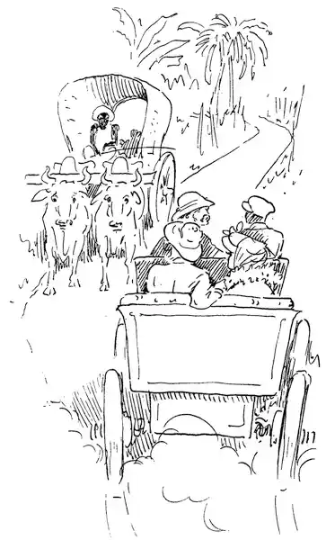 The motor seemed a strange vehicle in the midst of the primitive life of the Cingalese; and it is said that extremes meet, and certainly a motor and a primitive ox-wagon represent about the greatest contrast in means of locomotion and transport that one can well imagine. It was rather wonderful that we escaped a collision sometimes meeting such vehicles in the narrow lanes, or that we avoided296 running over stray chickens or dogs—the latter kind always resenting the motor and imperilling their lives by running and barking in close proximity with the enemy. The natives we met walking, too, were by no means alert in getting out of the way, and did not seem to realise the danger.