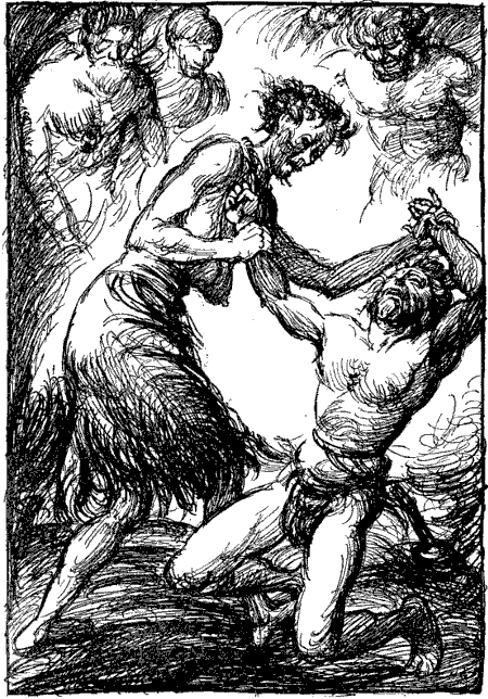 »Packt an,« gebot er den Brüdern. Und sie packten den ungefügen Erdenkloß, den Erdaussauger, zu dritt, hoben ihn hoch und zertrümmerten ihn an dem Felseneis.