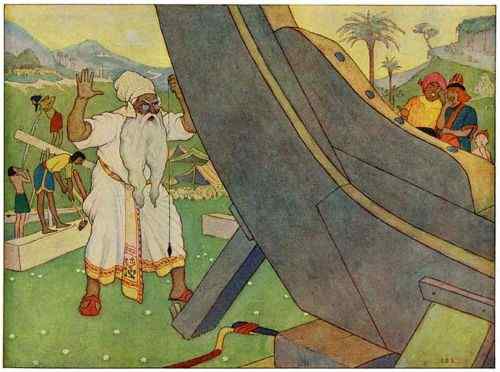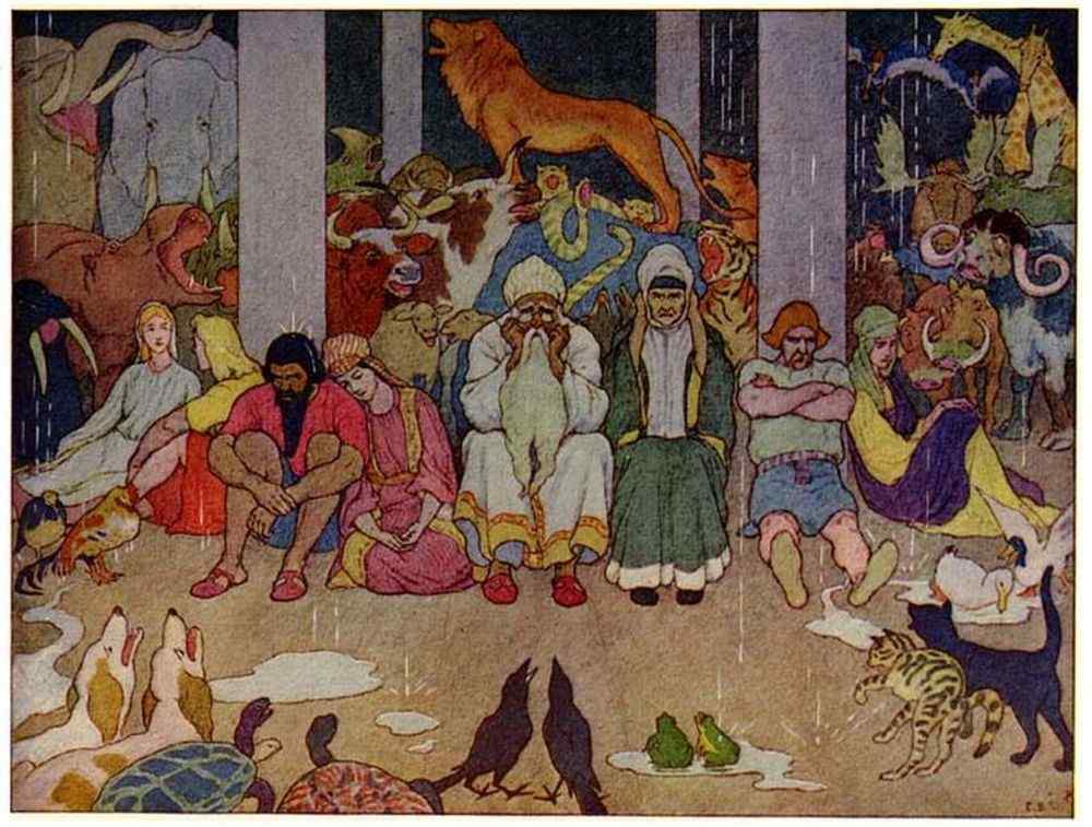Now Noah was warned that a great flood was to come, which would pour down from the clouds and drown the whole earth. He straightway told his neighbors what was to happen, but they refused to believe, and scoffed at him, and said: “Let it rain.[2]”