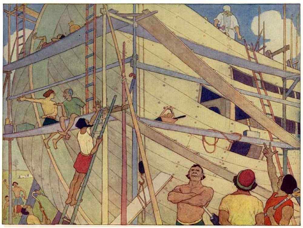 Then Noah went his way, and set to work to build him a great ship, to be ready for the day of deluge.