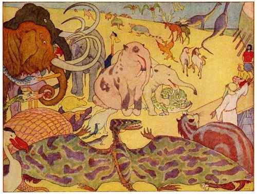 And Noah bade the beasts and birds go forth and seek new homes. And they scattered in every direction to begin life afresh; while Noah’s wife murmured “good riddance,” and vowed that she would never go to sea again.