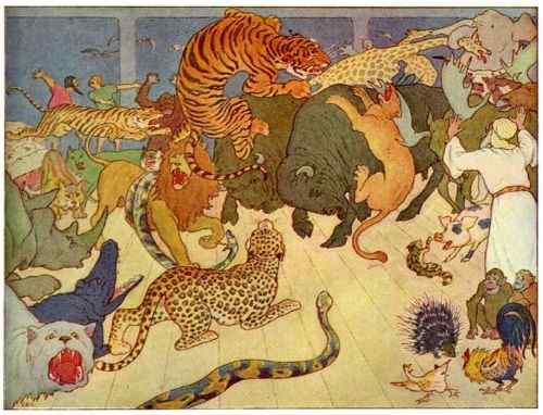 And the animals fretted and quarreled, and there was riot and disorder, and furious battle.