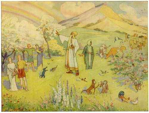 And a bright rainbow was set in the sky, as a sign that nevermore would a flood cover the whole earth.
