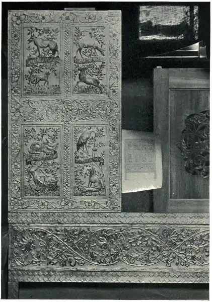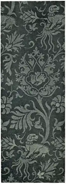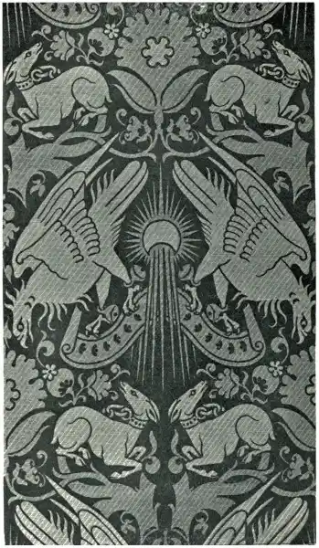 It might seem at first sight that such a material had no particular limitations or natural laws which in all art are so serviceable in evolving what we call style. Yet elastic as it appears to be, and possessing such considerable range of effect, experience soon teaches us that it has its own most fitting characteristics and tendencies in ornament. The artist, so far from desiring to disguise the real conditions of the work,256 would rather emphasize their peculiar characteristics. For instance, in laying on and modelling any design in gesso with a brush, he will find the brush and the paste conspire together to favour the production of certain forms of ornament, delicate branch and leaf and scroll work, for instance, and dotted borderings.