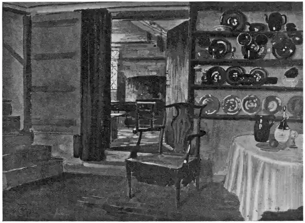 But I am far from saying that even the sky-landscape has no decorative place. But you must not mix it or have too much of it. A window may be an important decorative element in the scheme of an interior, and a landscape three parts sky may have something of the value of a window in a room. But it might be possible to decorate with landscapes alone, though one would prefer tapestry landscapes without sky, or with very high horizons, at least for the lower walls; certainly there never ought to be sky below the eye level on a wall. The Turner room has a certain unity and splendour of its own, regarded simply from a particular decorative point of view, and Turner would be pronounced I suppose the least decorative in feeling of modern artists—rather the epic poet in paint. Every age, too, has its own notions of decoration—indeed one might say even every decade now, or even a less period, we live so fast! No rules or canons of taste in art are of universal application or acceptable to all periods. As decoration is primarily fitness and harmony, with this central idea one may produce decorative effects with very different materials, and we have only to glance back to our historic periods to see how it was accomplished.