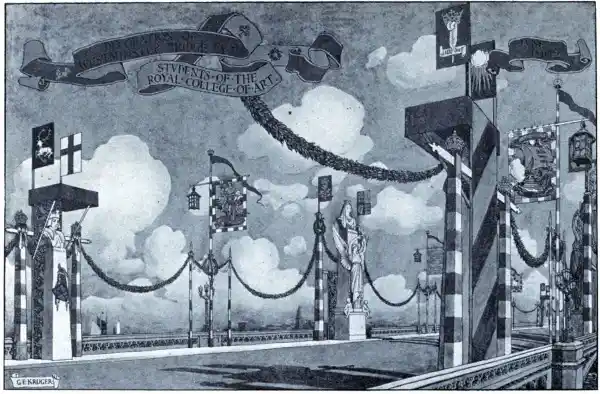 My best thanks are also due to Mr. Ernest Gimson for the loan of photographs of his cottage at Stoneywell; to the Earl of Pembroke for enabling me to obtain those of the double cube room at Wilton; to Mr. Charles Rowley, and Mr. Charles W. Gamble of the Municipal School of Technology, Manchester, for photographs of the Madox Brown frescoes; to Mr. Augustus Spenser and Mr. FitzRoy, the Principal and the Registrar of the Royal College of Art, for their help in obtaining for me the examples of the work of the students given; and to Mr. Arthur P. Monger for the care he took in photographing them; also to Mr. Kruger of the Royal College, for the use of his admirable drawing of the decorations ofviii Westminster Bridge, which appeared in “The Magazine of Art,” and is now reproduced by permission of Mr. M. H. Spielmann and Messrs. Cassell.