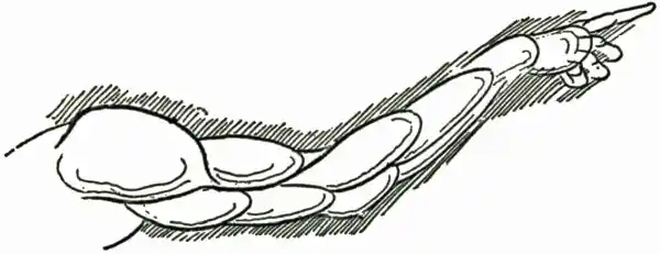 257 The modelling of the more raised smooth parts is produced by gradually and lightly adding—superimposing while moist fresh gesso, on the system of pâte sur pâte, which amalgamates with that underneath. The artist, in modelling the limbs of figures, would emphasize the main muscular masses, allowing for the natural tendency of the paste to soften its own edges in running together: so that a limb would be built up somewhat in the way indicated in the drawing by successive layers of the material floated over each other while moist. Of course, the success of the result depends upon not only the nicety of touch but also on the proper consistency of the gesso, which, if mixed too thin, would be likely to lose form and run out of bounds. Gesso, therefore, for brush work should be mixed like the valetudinarian’s gruel in one of Miss Austen’s novels—“Thin, but not too thin.”