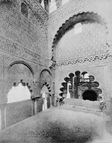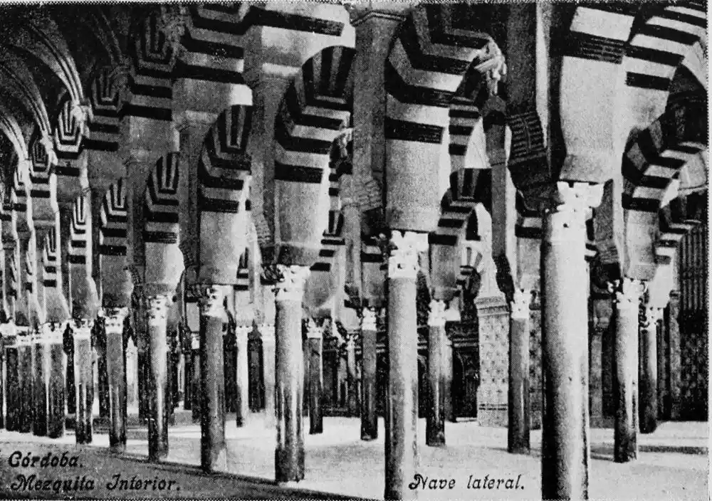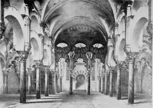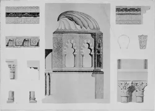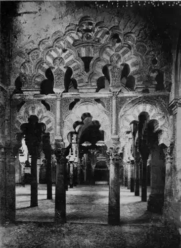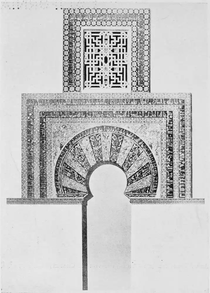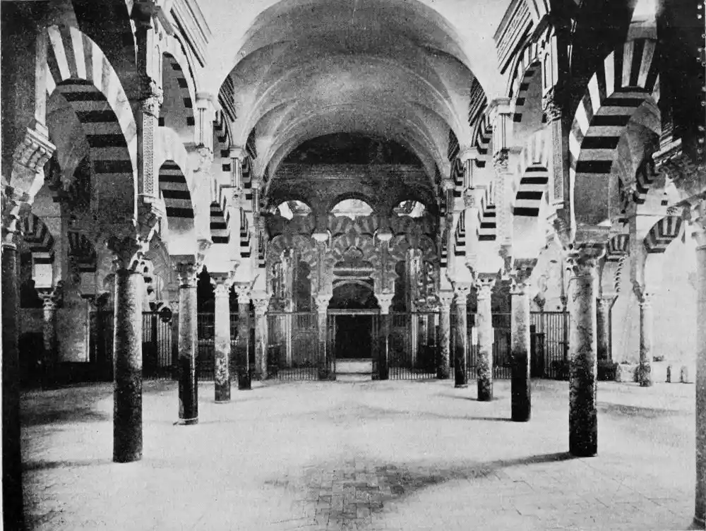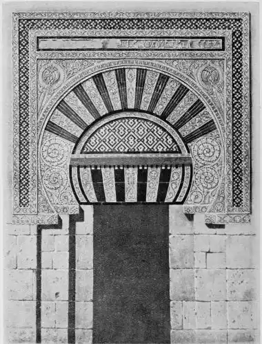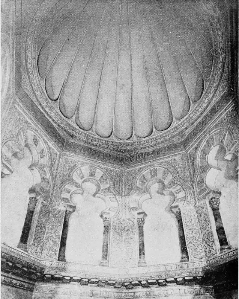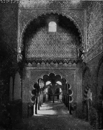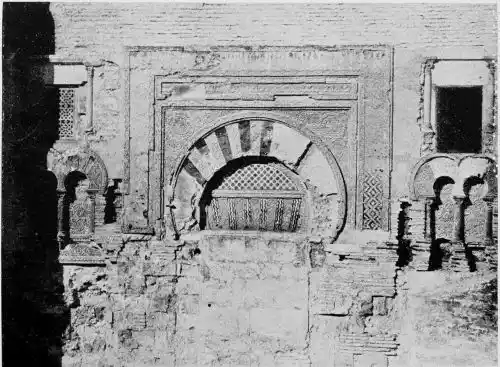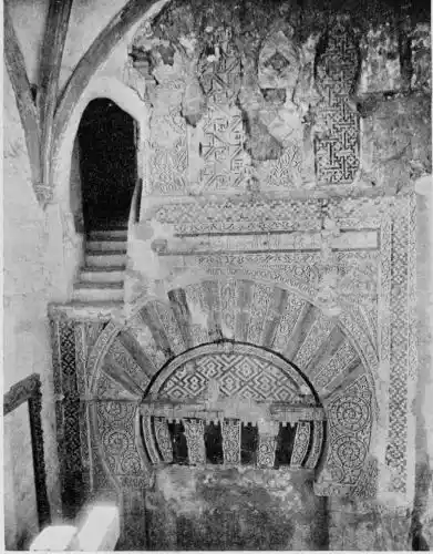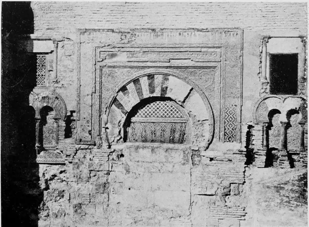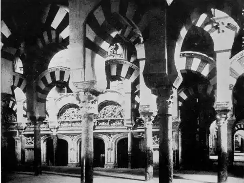 Tangible evidence of a superb civilisation surrounds us in Cordova. We see examples of early Moorish architecture brought to its highest artistic manifestation in the mosque. We listen in vain for the voices of teachers, the song of the singers and poets, and the call of the muezzin to devotion; but we tread in the footsteps of the long-vanished Moor, and read his story in the noble lines, chaste embellishments, and gorgeous details which his skilful hands produced.{13}