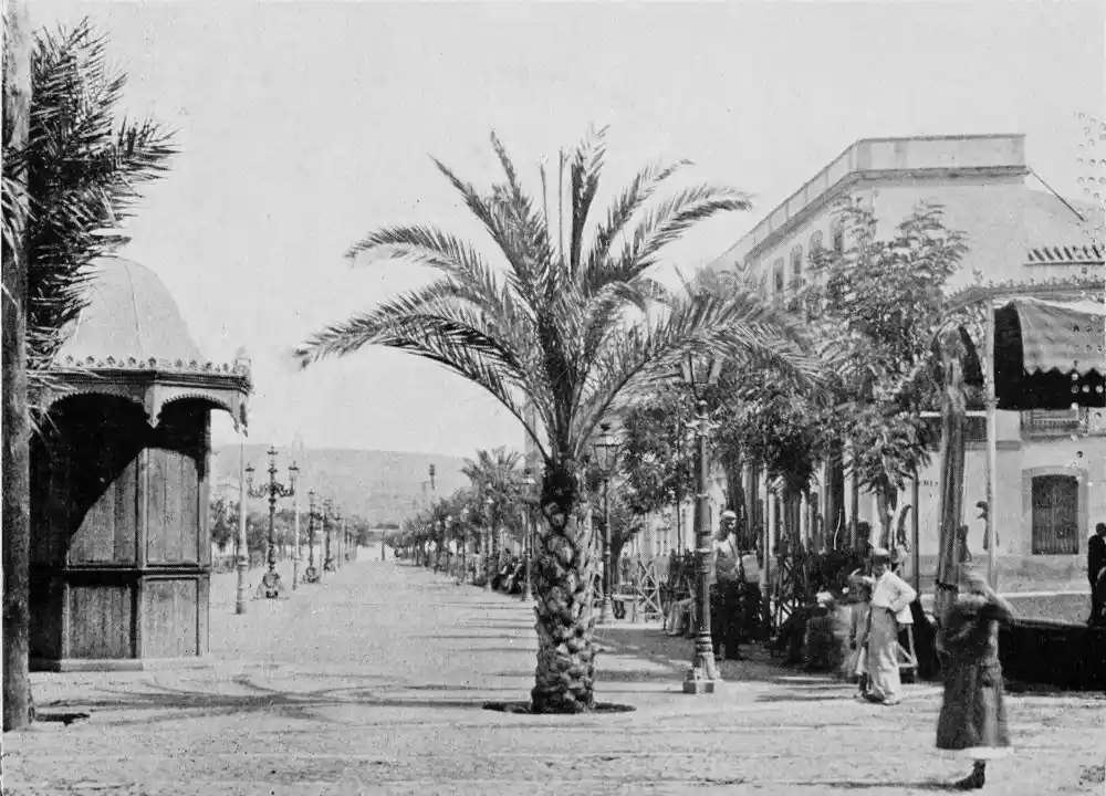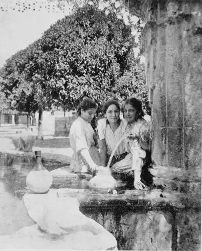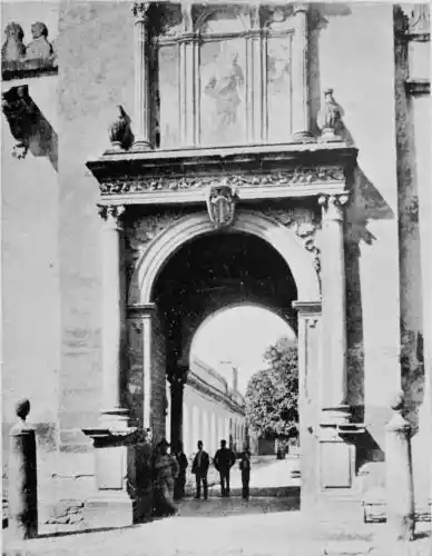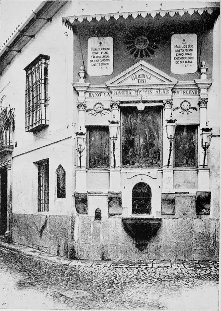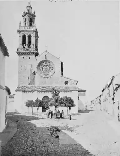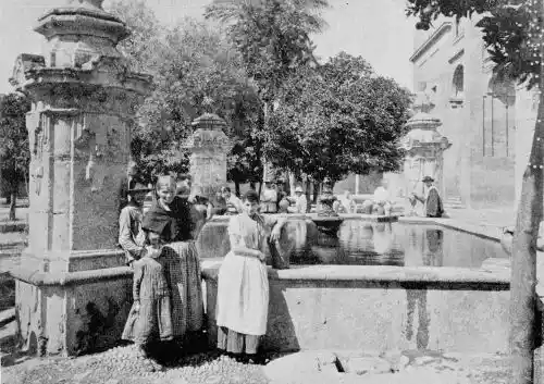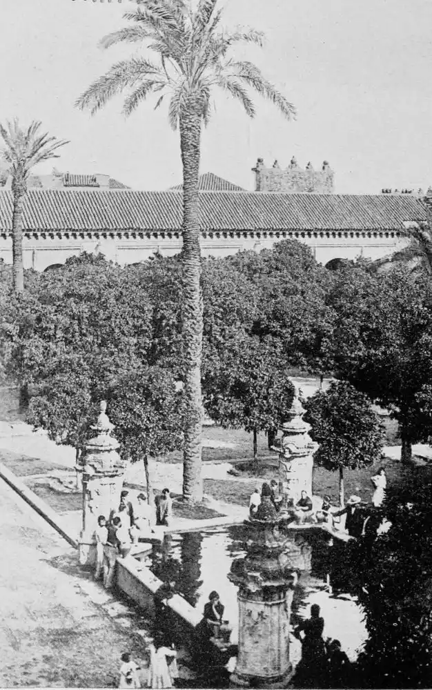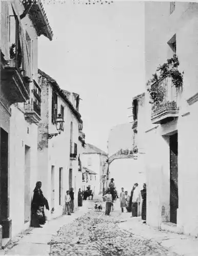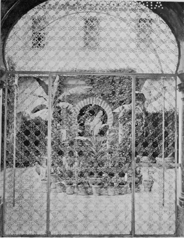 By these signs we learn to love Cordova as the sanctuary of learning and devotion rather than as the citadel of the valiant. It is essentially Oriental. Look at the streets—narrow, crooked, and shady, for, having no horse vehicles, the Arabs had no need for wider thoroughfares. The roofs of the houses project and screen the alleys from the sun. Cordova is clean and bright in contrast to Toledo. The streets are free from garbage; the interiors of the houses{7} are frequently cleansed, and flowers are grown by rich and poor. Fruits are cultivated in and around the town, and one may pluck the fig, orange, lemon, date, peach, plum, pomegranate, strawberry, and almond.