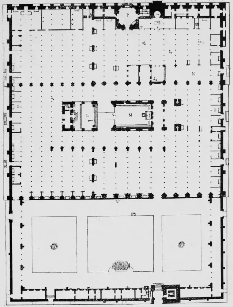 [3] The maksurrah is a screen or enclosure surrounding the mih-rab, with a sort of throne or platform where the Sultan sits, elevated above the level of the Mosque. The whole of that space which was taken up by the maksurrah is now occupied by the chapel of St. Estevan.
