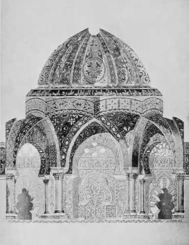[4] The mih-rab is a recess having a cavity within one of its walls, wherein stood that copy of the Koran held in highest veneration. The cavity also marked that point of the compass towards which stands the Ka’bah, the object of veneration at Mecca.