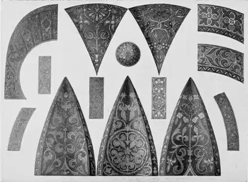 [6] Foseyfasa.—Gayangos tells us that the word is not in the dictionaries, but that, according to an old Arabian writer, it is a substance of glass and small pebbles crushed and baked together, uniting, with great variety of colour, great brilliancy and beauty; it is sometimes mixed with silver and gold. One of the conditions of peace granted to the Emperor of Constantinople by the Khalif Al-walid was that the Emperor should provide a certain quantity of foseyfasa or enamelled work for the great Mosque at Damascus. Idrísí, in his description of the Mosque of Cordova, says that the enamel which covered the walls of the mih-rab came from Constantinople.