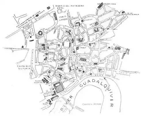 At Corduba (Cordova) the Romans established a capital of Hispania Ulterior, and the city was one of importance and prosperity. Under Cæsar it became the chief town of Bœtica. According to Plutarch, the government of Spain was given to Julius Cæsar after his prætorship, and he ruled firmly and justly over Portugal and Andalusia. The conquering emperor resided in{14} Corduba, and it was here that he was first attacked with epilepsy.