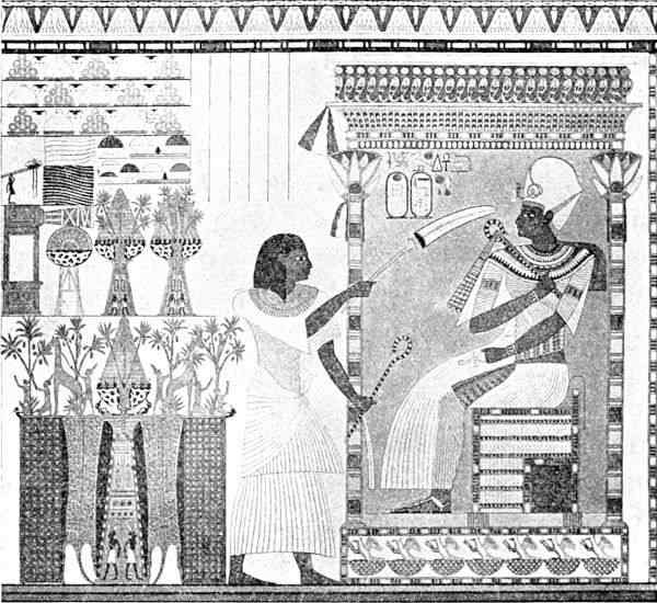 I have called attention to the aims which the ancient Egyptians kept so persistently in view in constructing and furnishing the tombs of their kings. The pharaoh’s body was embalmed to make sure of the continuation of his existence beyond the grave. The conviction 61 that this object was really attained when the mummy was made and housed in an imperishable building induced them to furnish the tomb lavishly and to provide an ample store of food to sustain him and give him all the comforts and luxuries to which he was accustomed when he was living upon earth. But, to make doubly sure, they inscribed upon the walls of his tomb, upon his sarcophagus and coffins, and on papyri placed in the tombs, certain texts to make clear his identification with Osiris, with the practical object of ensuring that he should share the fate of the god and attain the immortality which the god had secured. Moreover, other devices were adopted to make the issue more certain.