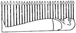 Another expression of the essential meaning of these couches was the belief that the placing of the corpse or mummy on a raised stage was magically efficacious in transferring the deceased to the sky-world. The use of such raised platforms is practised over a very wide geographical area, and for the reasons given in my pamphlet The Migrations of Early Culture (1915). There can be no doubt that it gives expression to the same belief as the lofty and uncouth funerary beds in Tutankhamen’s tomb have forced upon our attention.