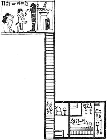 The plan of the tomb presents a marked contrast to the more familiar Theban burial places; but it becomes more intelligible when it is compared with those which were made at the heretic king’s capital during the time of Akhenaton.