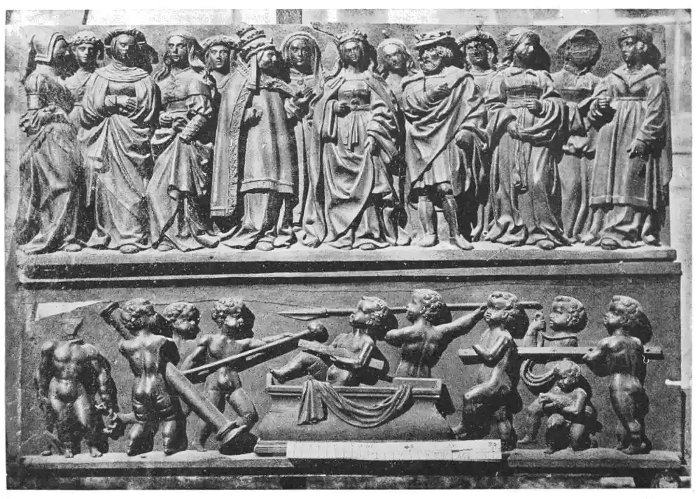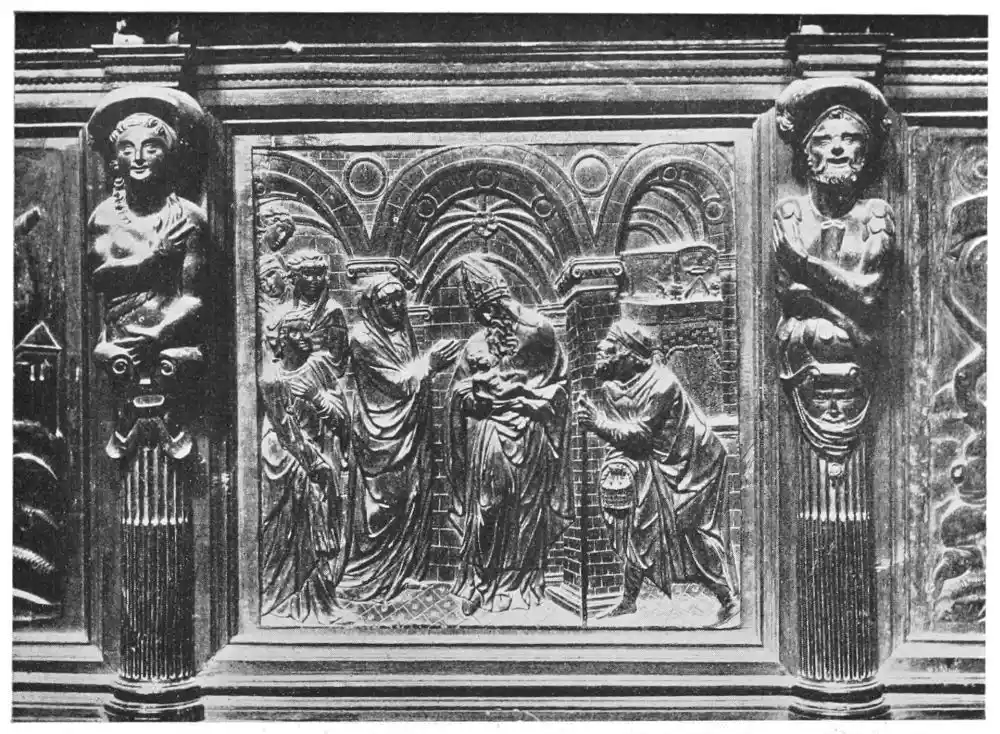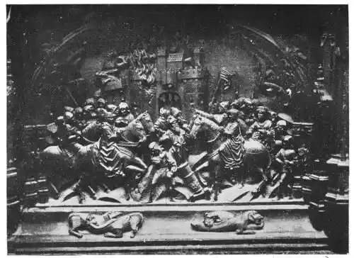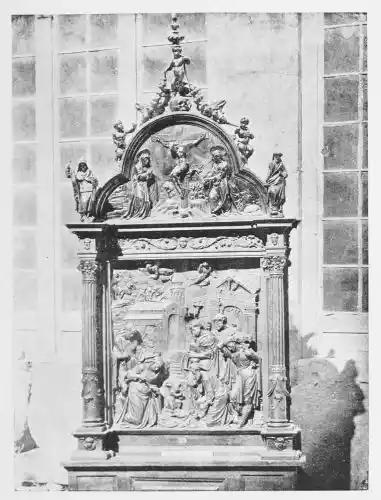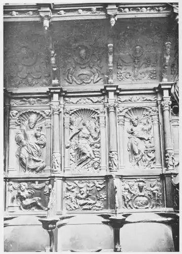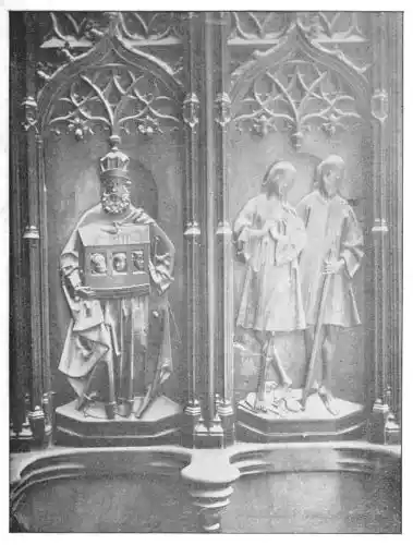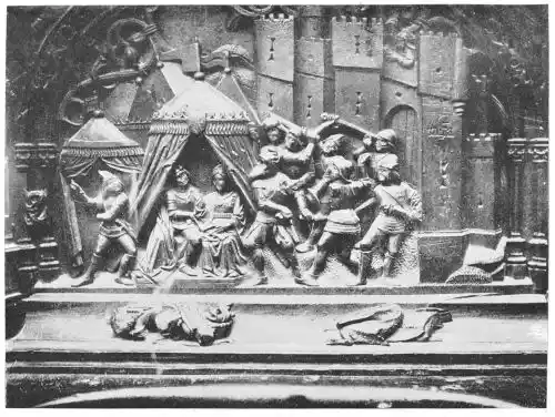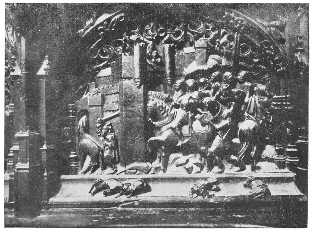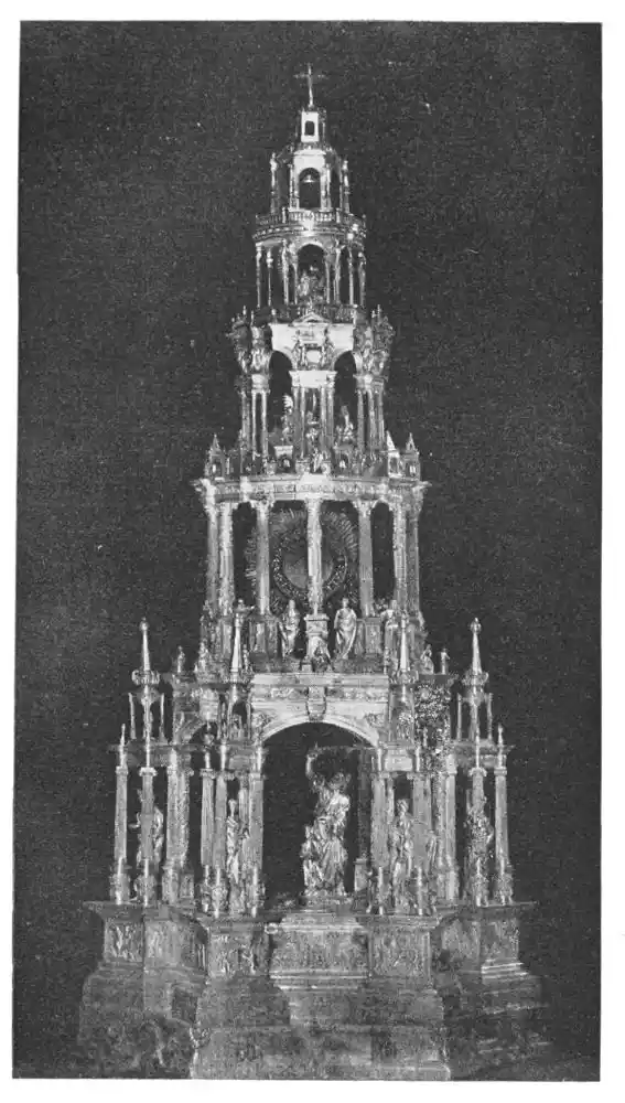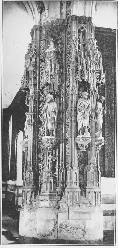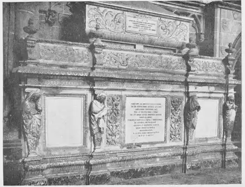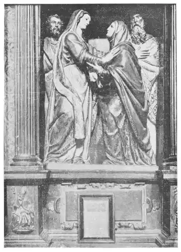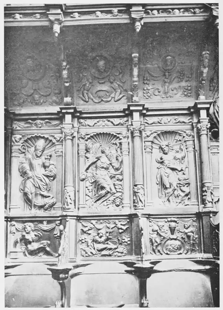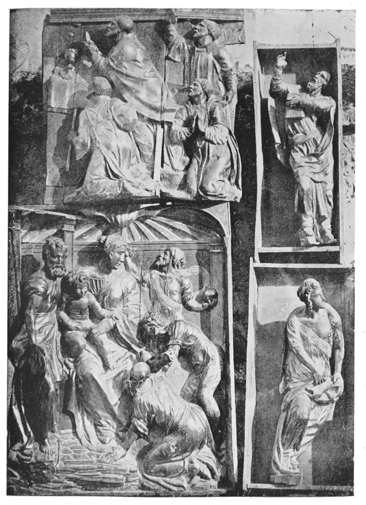 Four years later Dancart was entrusted with the important work of erecting the grand altar of the cathedral (Plate 134). He executed the design, but the work was carried out by his pupils Marco and Bernardo de Ortega. The latter artist worked at the screen until his death in 1505, when the completion of the work was left to his son Francesco and to his grandson Bernardino. Gomez Oroco, George and Alexis Fernando Aleman, and Andres de Covarrubias also worked at different parts of the screen. In 1519, when the work was completed, the canons, for some reason not known, employed a pupil of Fernando Aleman named Moya to modify the design. He{120} was three years over the work, which he finished in the autumn of 1564. Some years later two wings were added, and the screen was finally completed in 1564. This mixed authorship was a mistake, and has resulted in a want of continuity in the design which has marred to some extent the beauty and harmony of the work.