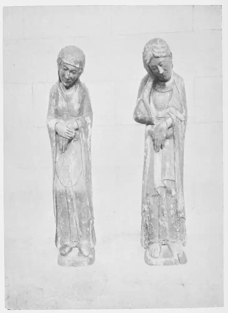 Coloured statuary was more persistent in the south than in the north. Flanders, Germany, and afterwards France were converted from the custom. Yet Jan van Eyck collaborated with the sculptor, as did also André Beaunevau. The life-size statues which decorate the Château of Madrid built for Francis I., and those in the Toulouse Museum, taken from the Basilica of St. Sermin, prove that coloured statuary still persisted in the sixteenth century. These last figures are of special interest from their analogy with Spanish polychrome statuary.
