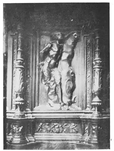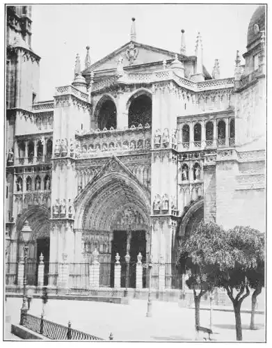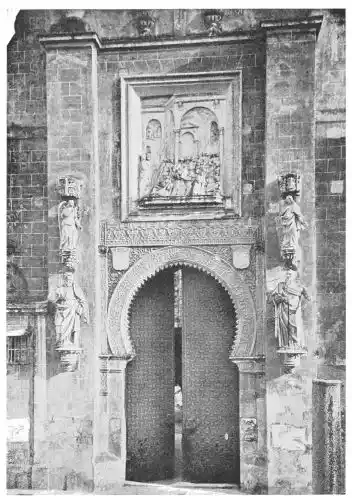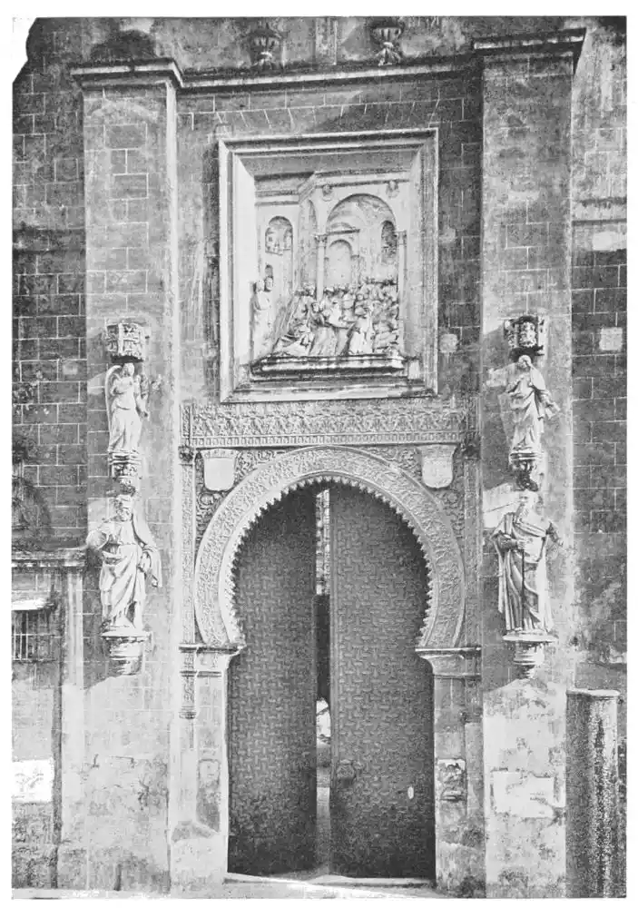 The Andalusian school of sculpture was an offshoot from the school of Castile and Aragon, though in some respects its history was different. The reason of its late development is not difficult to find. In Southern Spain the Moorish influence was stronger and more enduring than in the North; and for all their secular buildings the Spaniards adopted Moorish designs and Moorish methods of decoration. The Alcázar of Seville, in its original state before alterations, and the Casa de Pilatos, are very pure mudéjar monuments. There was no abrupt transition between the Persian architecture and the classic style of the Renaissance. It was in the churches alone that opportunity arose for the development of Christian architecture. We find Roman or Gothic structures according to the epochs of their building. But even the churches retained the minaret in the form of clock-towers,{118} and other Moorish features, as, for instance, the Puerta del Perdon of the Cathedral of Seville.