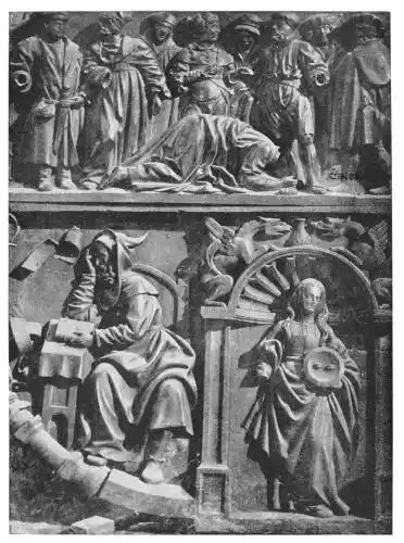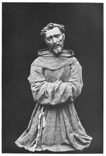 What was it that kept Spain alone faithful to the old method of using colour as well as form to give life to her statues? First, a respect for{13} tradition which has marked all things in this strong and stubborn race. Then the Spanish carvers were in very close connection with Mudéjar architecture, which was closely allied with the art of Persia, in which colour ruled with such supreme insistence, and whose whole strength lay in ornamentation. But deeper even than these outer reasons was the Spanish character, which expressed itself in their altar carvings and in their statues. The one thing the Spanish artist sought for first was the reality of life; and this life was religious life, for in Spain the divine life was not separate—a thing detached—but a real living part of the human daily life of the people. The painted statues were at once more life-like and spoke a more real language to the people, than figures chiselled in white stone. The statuary of Spain was not wrought, in the first place, to fulfil claims of art, but to satisfy the needs of the people. It is still in the convents and churches of Spain—not in the museums, if we except the museums of Valladolid and Seville—that the masterpieces of polychrome statuary remain. It is there that we must seek them.[B]{14}