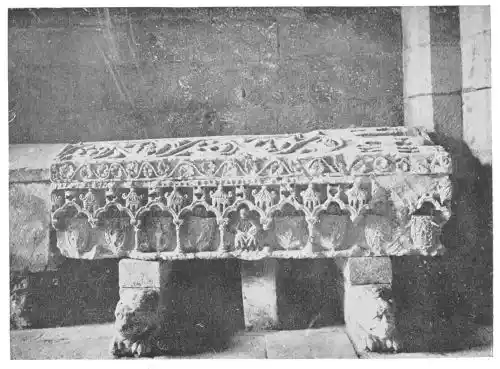 These few statues, then, are all that we have of Latin-Byzantine art in Spain. Rude as the figures undoubtedly are, falling far below the works of the native Iberian art which preceded them, it will not do to neglect them. Christian Spain was convulsed with ceaseless warfares, which gave little time for the development of the{24} arts. Native talent slept. Christian monarchs employed Moorish sculptors, architects, decorators, and goldsmiths. So it happened that there was developed in Spain a sort of pseudo-Mozarabic style in which, for a time, the characteristic Spanish work seemed lost.{25}