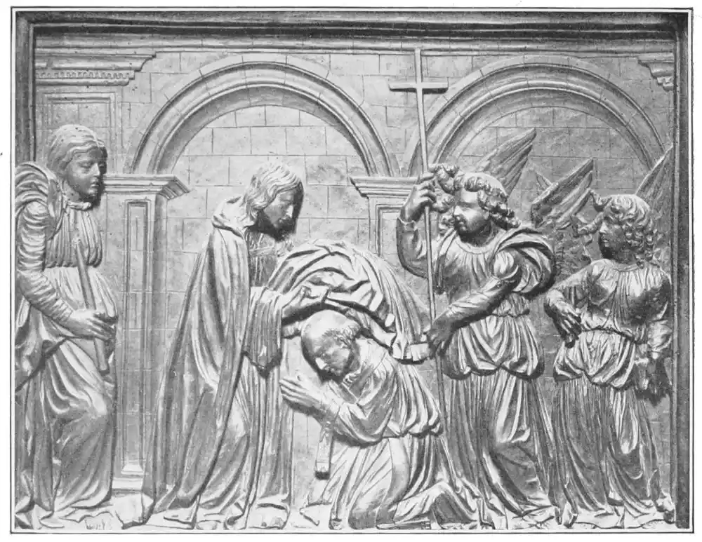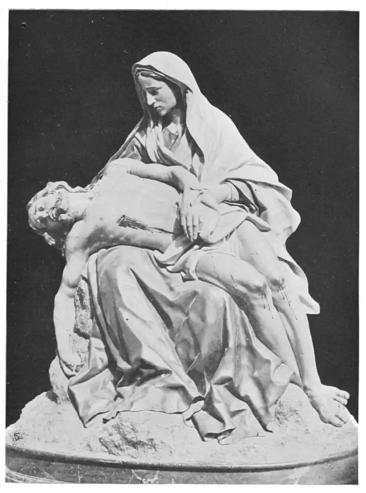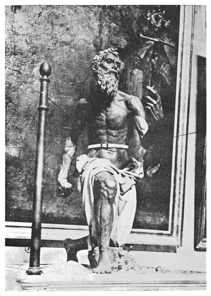 But the tradition of polychrome statuary yet persisted, and at the opening of the Renaissance still fought for life. Italy possessed some great statue colourists in the fifteenth century. We know of coloured statues and bas-reliefs by Donatello, by Mino of Fiesole, by Pisáno of Luca, by della Robbia, and others. Even much later we find examples of the continued use of colour. Such, for instance, are the equestrian statues of the ducal family of Sabbroneta and the groups in the chapels of the Sacromonte at Varullo. It is important to remember that the great masters{12} deplored the abandonment of statue colouring, and, among others, Michael Angelo wrote an instructive and precious letter upon the subject.