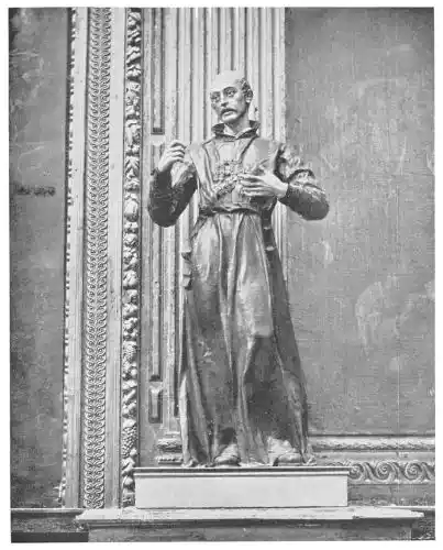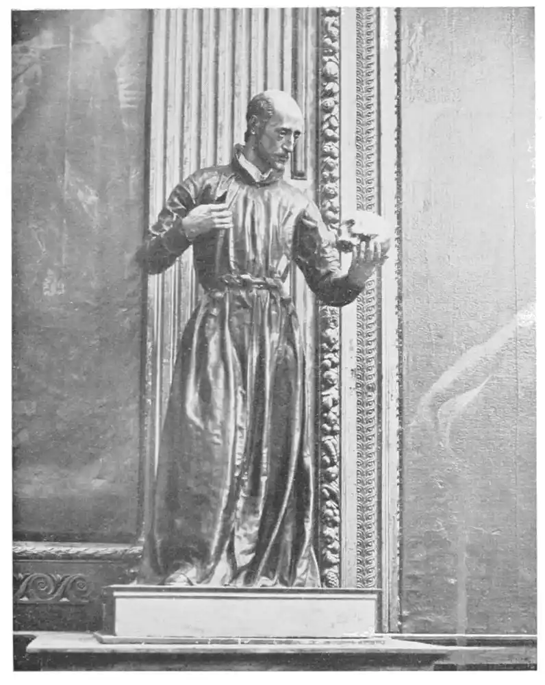 The earliest undertakings of Montañés after the execution of the infant Jesus for the Santísimo Brotherhood were two portrait-statues of St. Ignatius Loyola and St. Francis Xavier (Plates 140 and 141) which were commissioned in the year 1610 on the occasion of the beatification of the former saint, and which are now in the University Chapel. Of these idealised portraits Professor Justi writes that they are “marked by noble severity of character and pathos of expression.”