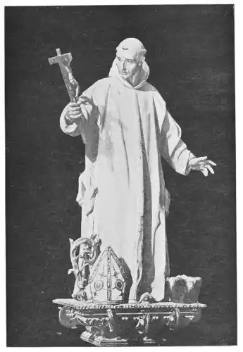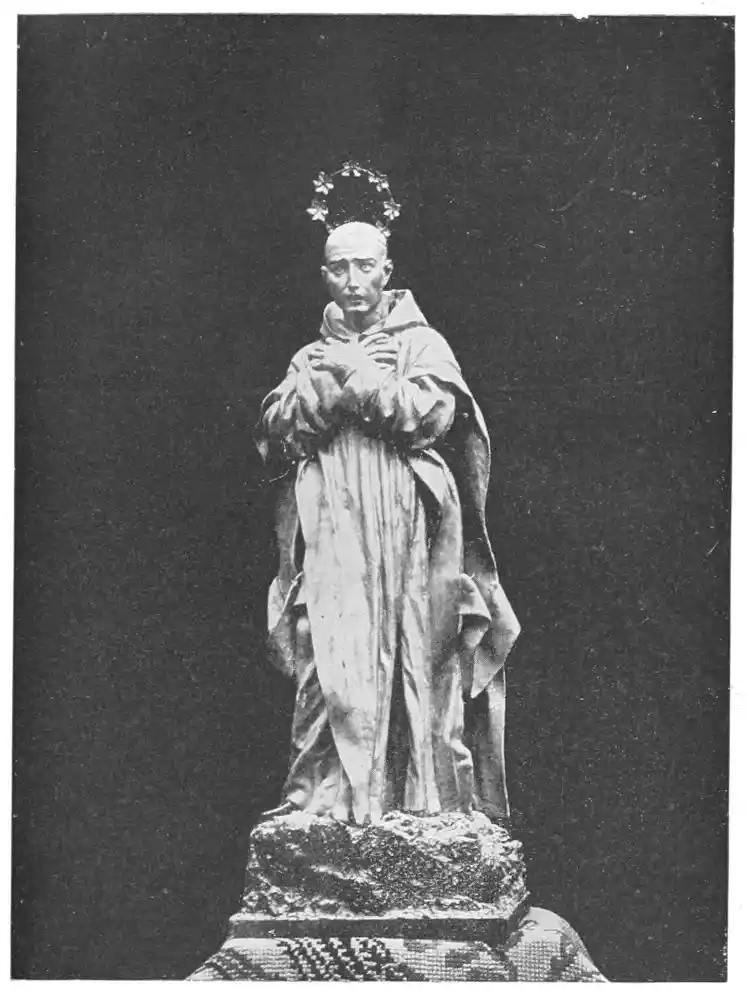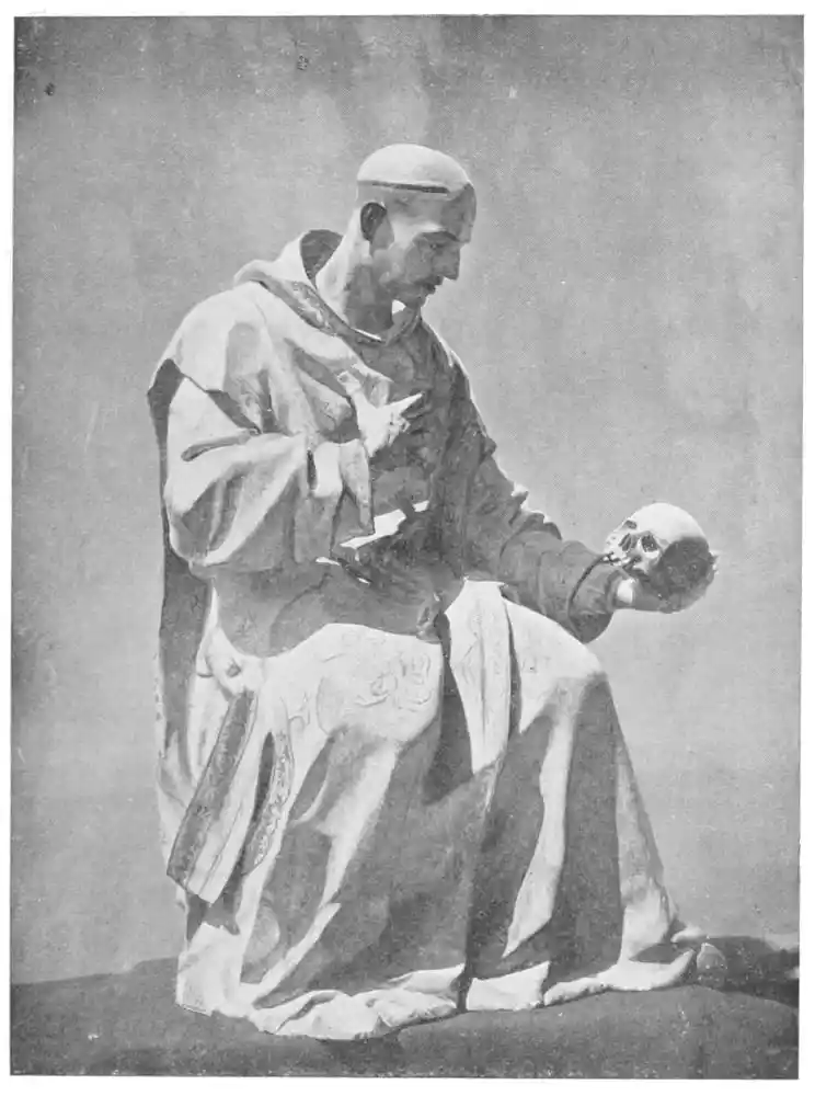 But of greater fame was the Portuguese sculptor Manuel Pereyra, who, though reported to have studied in Italy, must certainly have been the pupil of Hernandez, if we may judge from the testimony of his works. They show no trace of Italian influence, and are inspired by the earnestness of Spanish devotion. We first hear of Pereyra in May 1646, when he carved in stone the statue of San Felipe for the convent of the saint at Valladolid. His reputation grew rapidly, and his statue{113} of St. Bruno, executed for the Hostel of the Chartreuse del Paula, set the seal to his fame. The statue was so greatly admired that it is said that King Philip IV. ordered his coachman, on passing the door, to slacken the pace so that he might admire it at leisure. There is a fine replica of the St. Bruno in the Chartreuse of Miraflores. Like Hernandez, Pereyra used quiet colours, without gilding or damask effects. In his last years Pereyra became blind, but this calamity does not seem to have interfered with his carving. He died in 1667.