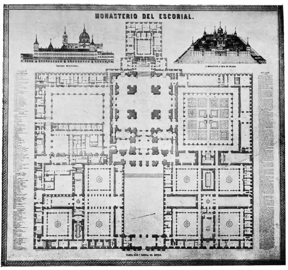 Among the earlier writers, perhaps the most interesting is Franciso de los Santos, whose work was published in Madrid in 1681, under the title, Descripcion del Real Monasterio de San Lorenzo del Escorial.{22}