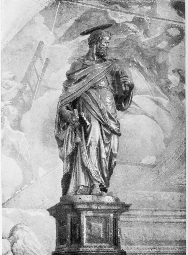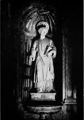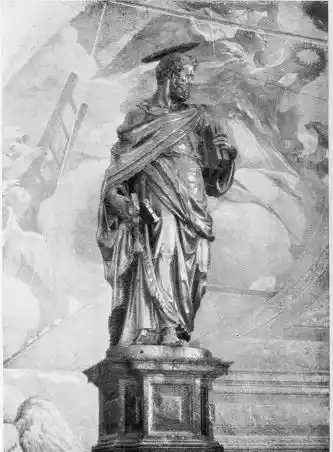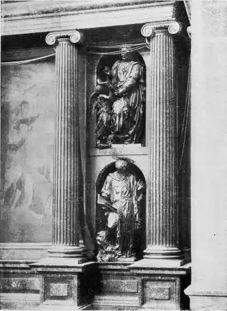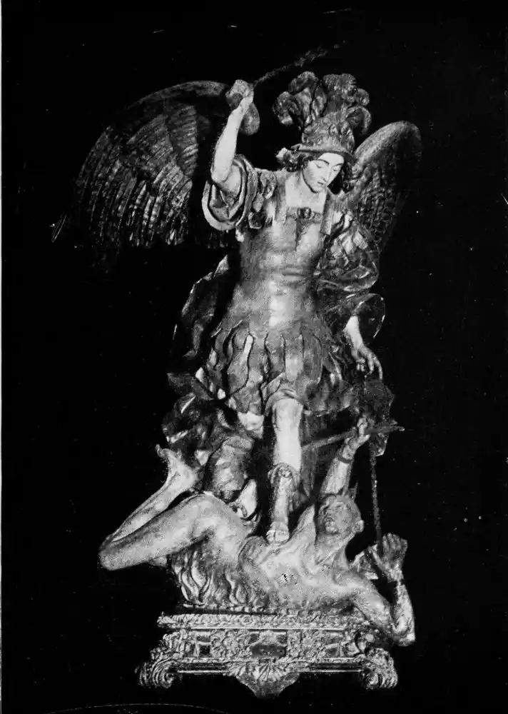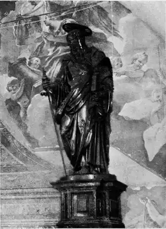 Monegro’s figure of San Lorenzo, huge, and carved in stone, stands above the door. The head and the hands are of Andalusian marble. Monegro is said to have asked the sum of 20,900 reales for carving this effigy, and other 7700 reales for the arms of Spain carved below the statue.