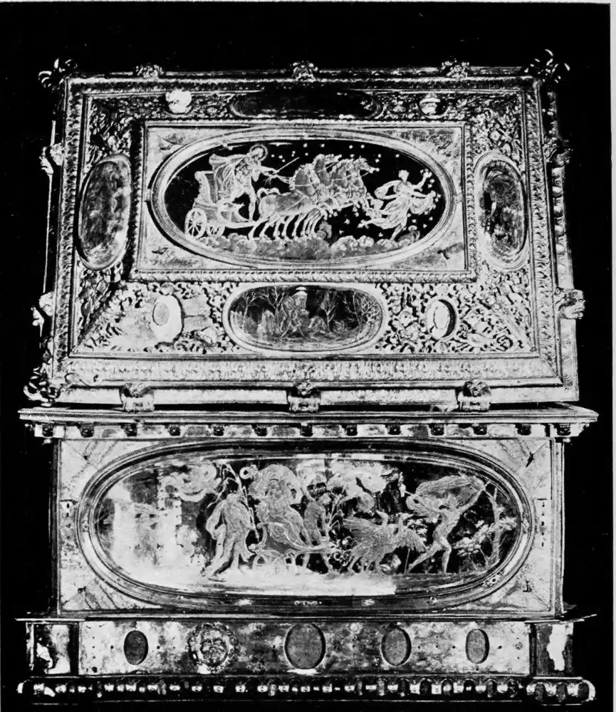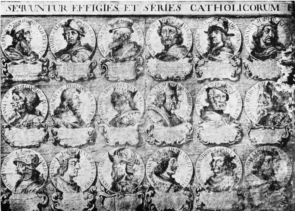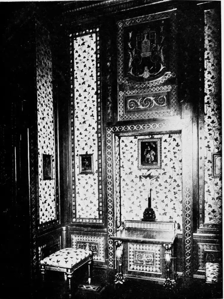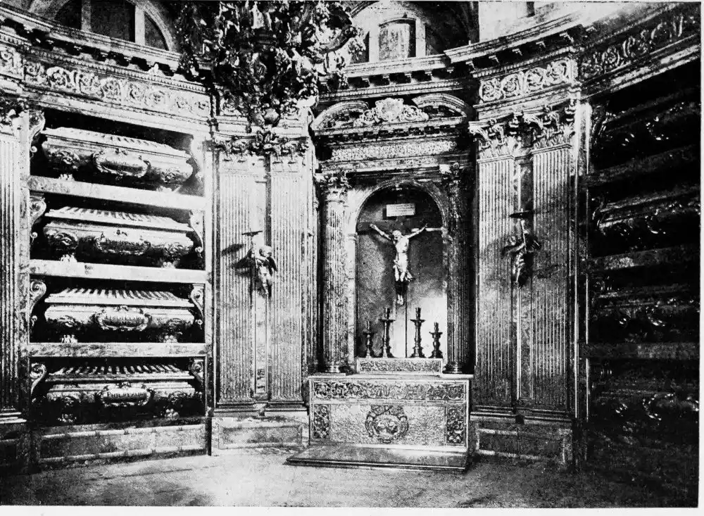 In 1570 Philip married for the fourth time, his bride being Anne of Austria. A year later the queen gave birth to Fernando, who died at Madrid at the age of seven, and was buried in the Escorial. The body of Don John of Austria, natural brother of Philip, was interred beneath the altar of the{13} church in the following year. In 1574 the remains of the illustrious Emperor Charles were transferred to the vaults of the Escorial with much ceremony, and at the same time several other royal coffins were removed to the newly-made royal resting-place. During the solemn service a terrific storm destroyed the dais which had been erected for the ceremony, and the splendid trappings that covered it.