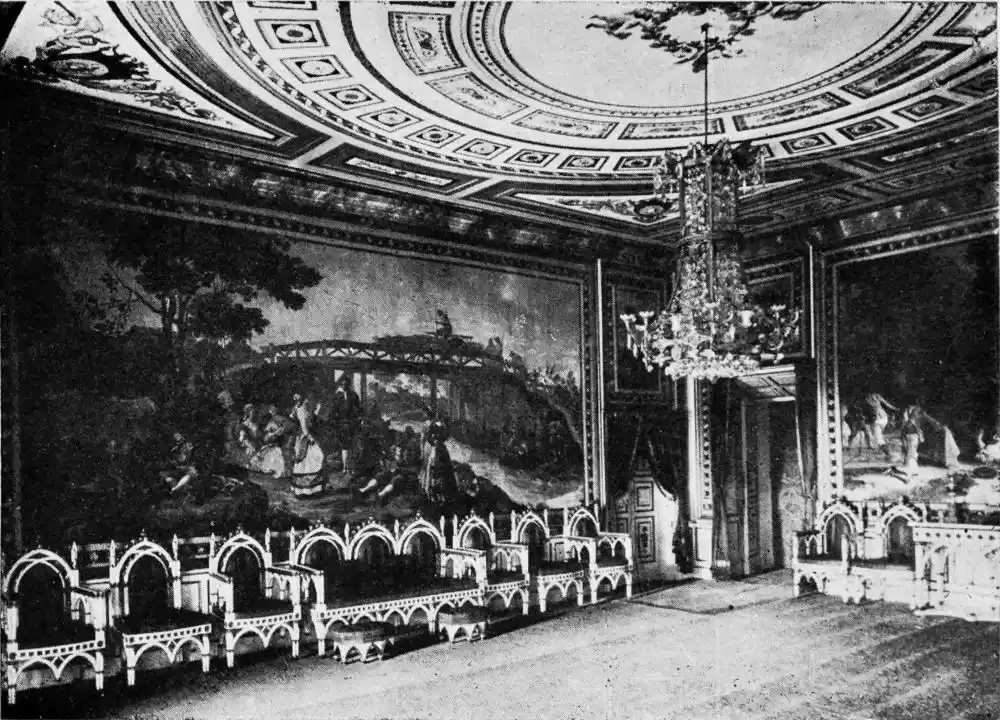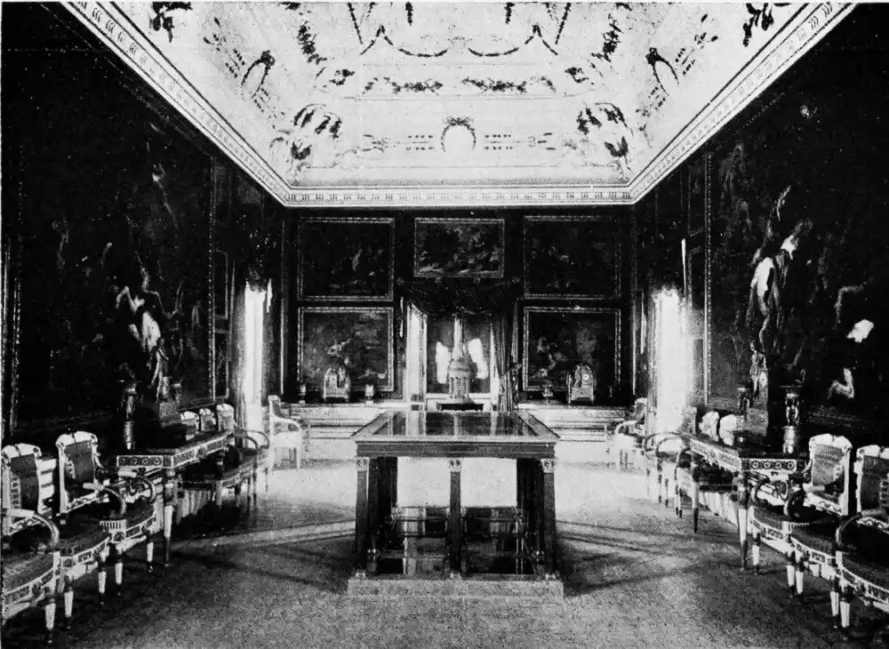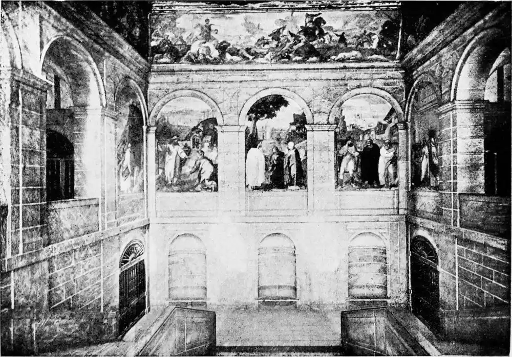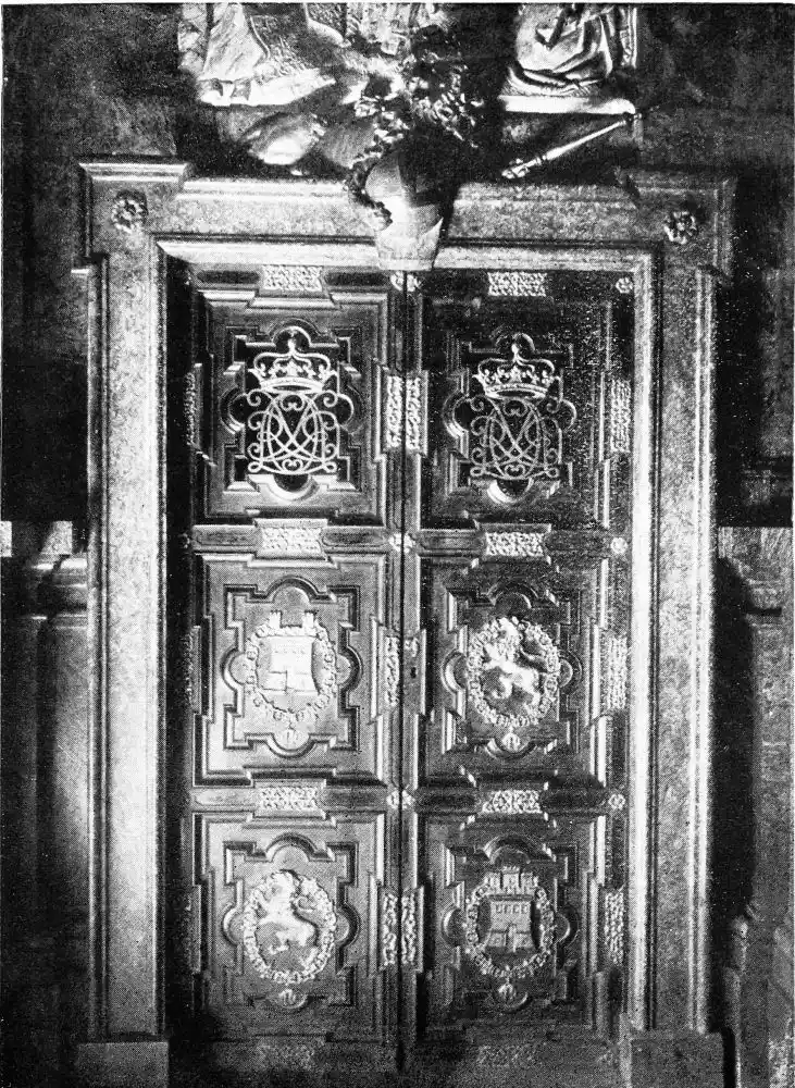 In accordance with his father’s wishes, Philip III. began to build the present burial-vaults soon after his accession to the throne. He did not live to see the completion of the work, which was continued during the reign of Philip IV. The construction was, however, delayed through the attitude of the overseer of the works, who objected to the expenditure of so large a sum of money from the national exchequer; but under the monk Nicolas, the Panteon was at length made ready, in 1654, for the reception of the coffins of members of the royal families.{18}