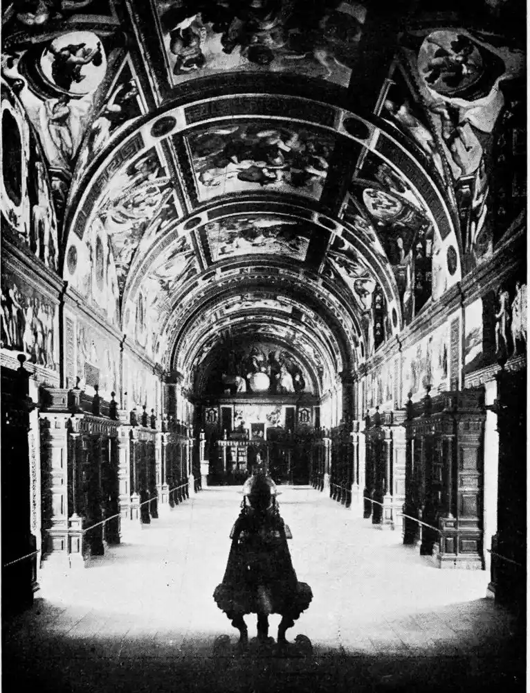 In preparing this description, I have sought for historical facts amid the pages of Don Antonio Rotondo’s large and admirable work upon The Escorial, in the Historia del Escorial of Father Sigüenza, in the writings of Prescott and Dunham, and the volume of Pedro Madrazo on New Castile. I am also indebted to C. Gasquoine Hartley for notes upon the artists of the Escorial, gathered from her Record of Spanish Painting, and particularly to Mr. Walter M. Gallichan for his assistance in the compilation of the material.