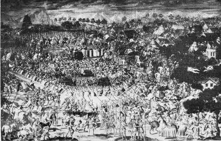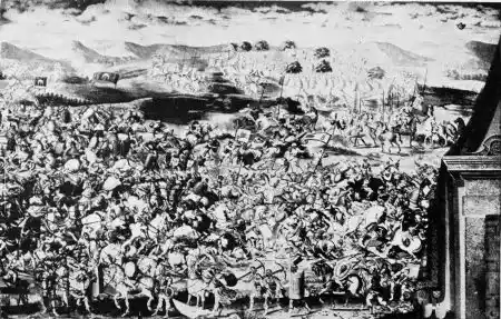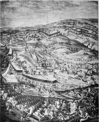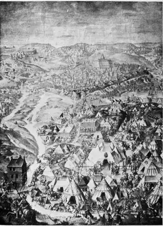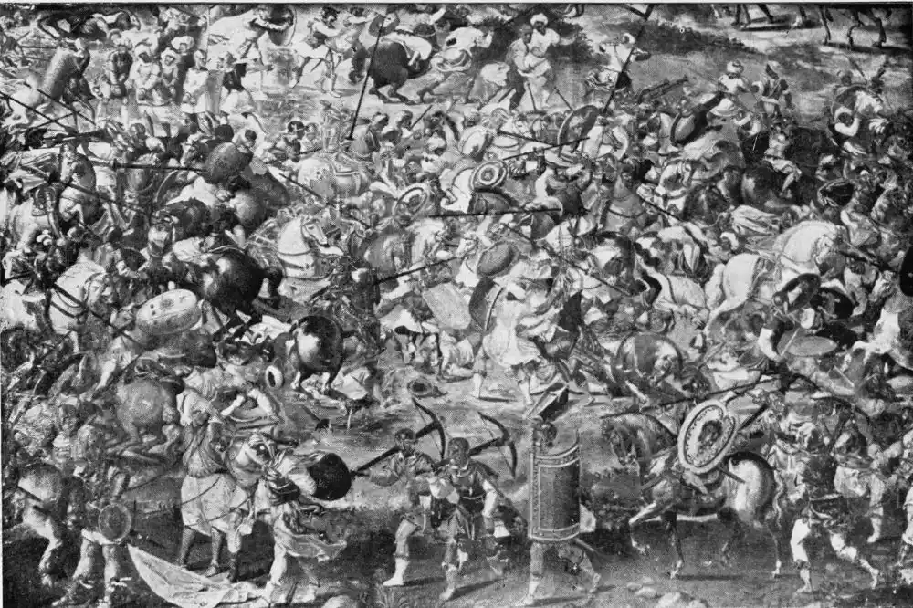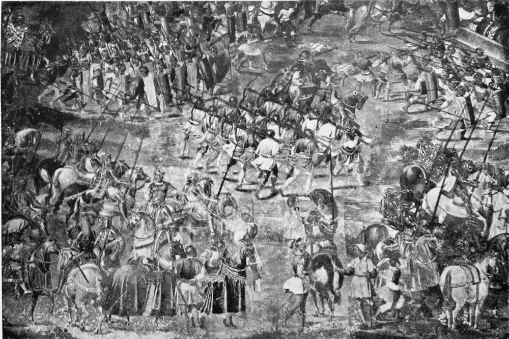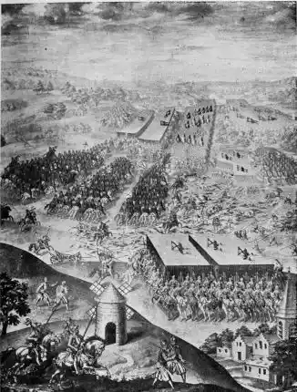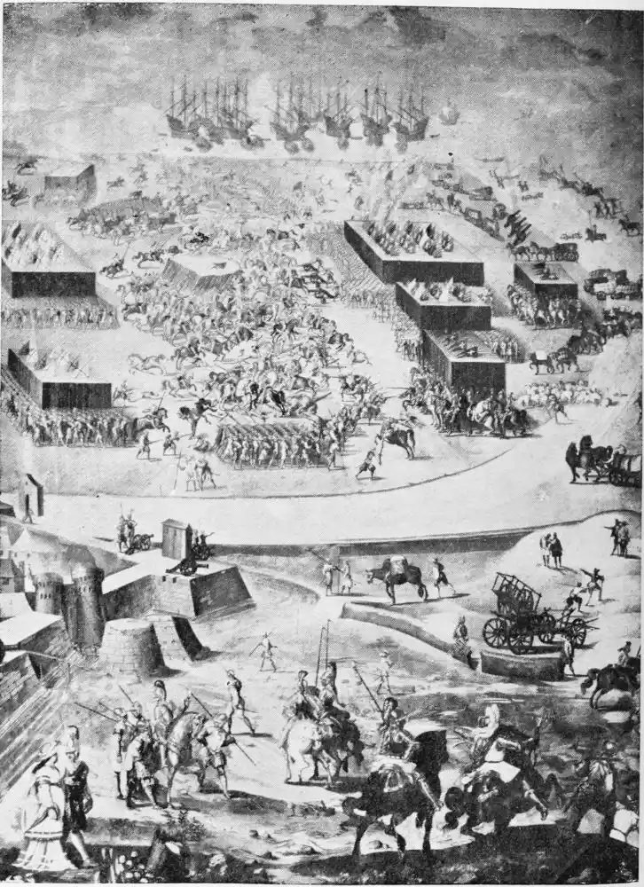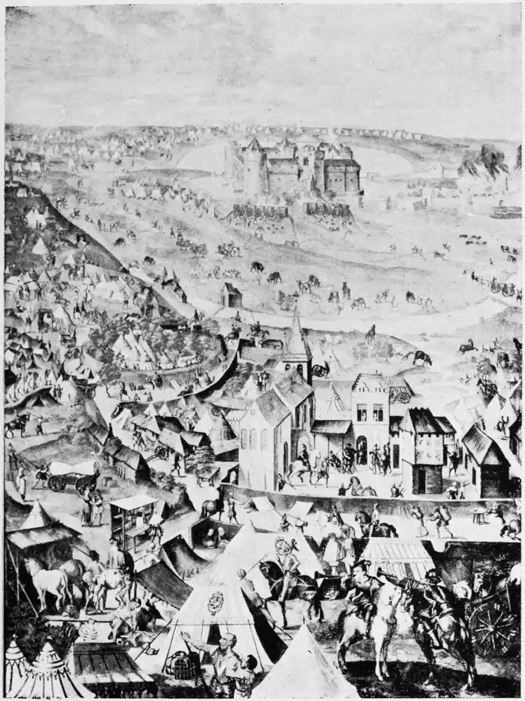 The French general was the Duke de Nevers, who was assisted by the Constable of France, Montmorency. To Coligni, the great admiral, was given the task of augmenting the garrison of St. Quintin. The troops of France were nevertheless greatly outnumbered by the Spanish forces. Flemings, Englishmen, and Spaniards, in{7} combined array, made desperate assault upon the defenders of St. Quintin. In a last rally the French formed squares, but the artillery of the Duke of Savoy broke up their ranks. Montmorency was among the prisoners who were seized by the Spanish, and it is recorded that he was treated with considerate courtesy.