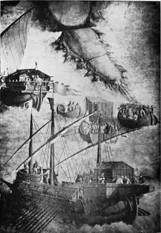 Besides the havoc of hurricanes, the building twice suffered serious injury from fires. The first broke out when the work was almost finished. The cause of the conflagration was a lightning stroke, and the flames raged for several hours, creating consternation among the monks and the other inmates of the edifice. When the fire was subdued, the king had to grieve the destruction of the fine belfry and the loss of a costly peal of bells. Although the fabric was much damaged, no lives were lost, and several sacred relics were recovered uninjured.